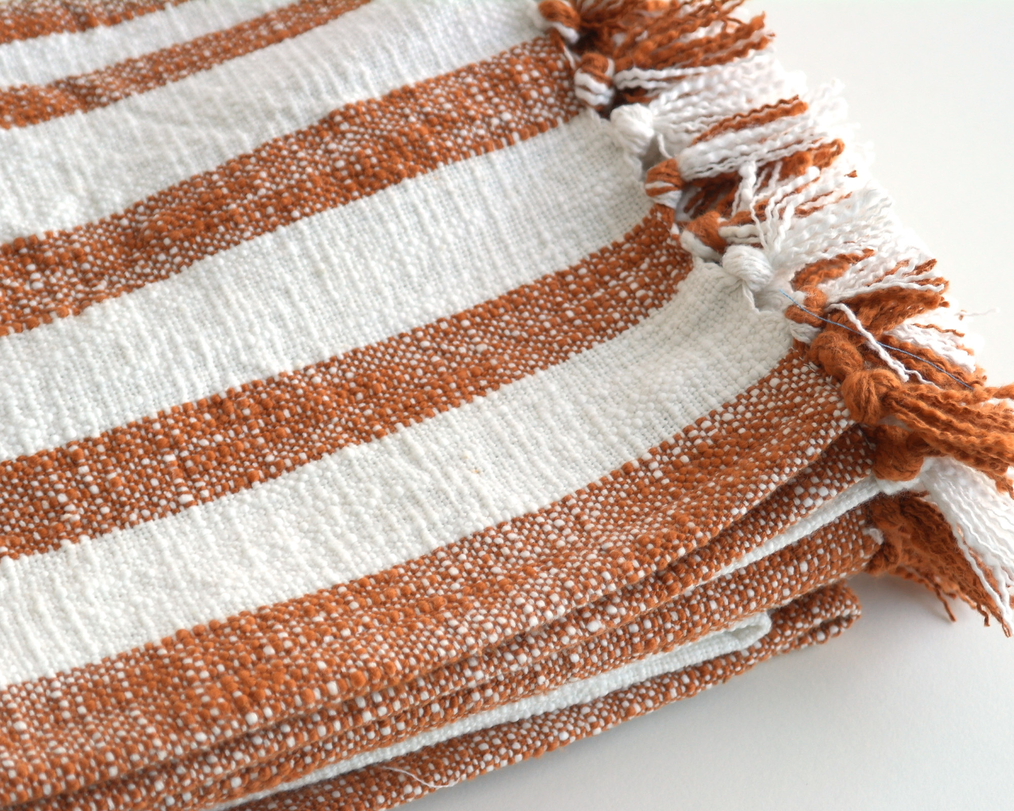 Plaid Jax van zacht slubkatoen – gestreept in zeven natuurlijke kleuren, perfect bij de Jax-kussens